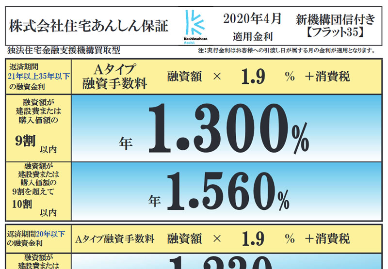 住宅あんしん保証【フラット35】令和2年4月の金利情報です