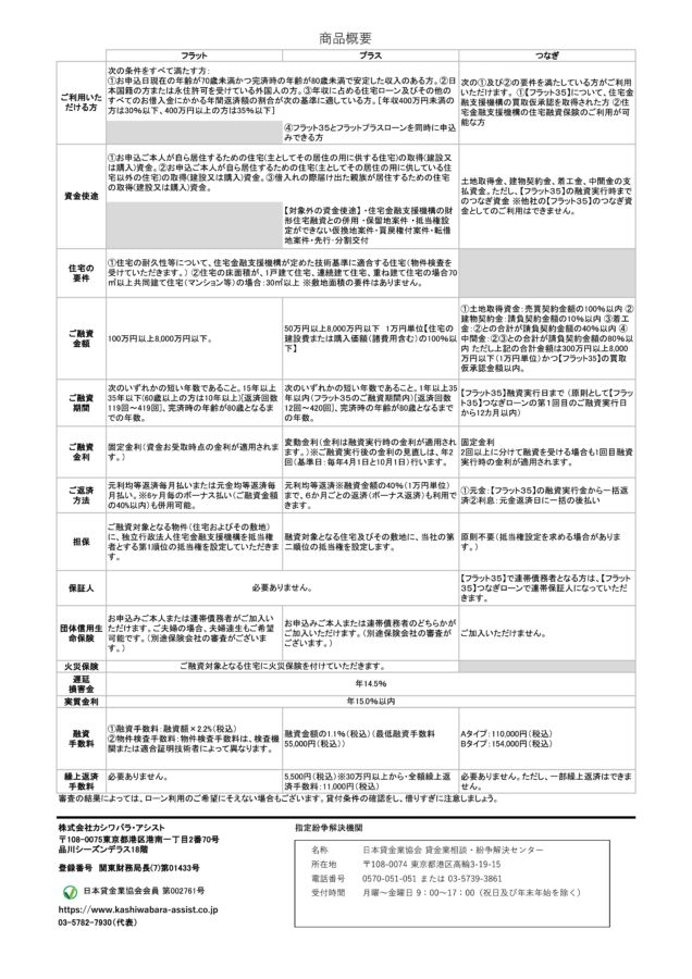 • 商品概要(カシワバラ・アシスト・フラット35)